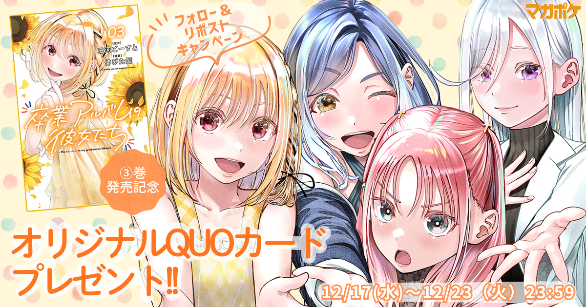 【懸賞】『卒業アルバムの彼女たち』3巻発売記念! フォロー&リポストでQUOカードが当たるキャンペーンを開催します!25/12/17New!